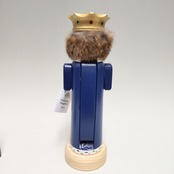 の『青の長衣の王様』はユングヘネル工房のオリジナル作品です。ユングヘネル工房はツヴィッカウスタイルのくるみ割り人形制作で知られています。威厳ある長衣をまとった王様がモデルで、彼の姿は豪華さと神秘的な魅力を兼ね備えています。立派な王冠と衣装で、見る人を惹きつける存在感がありますね。また、必ず台座の裏には作家のサインと工房の焼印と制作月日がついています。
