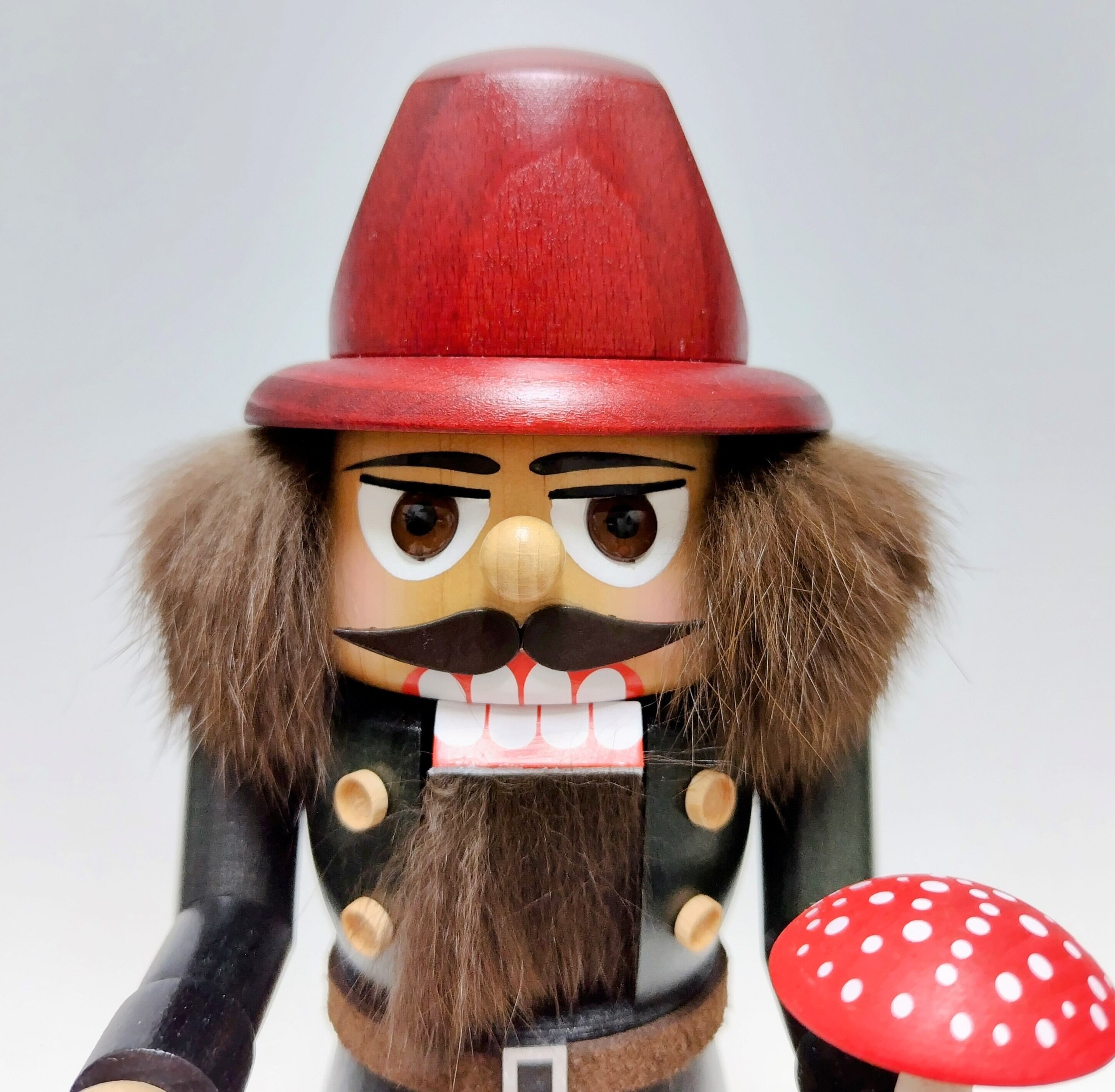 独特な魅力を放つ『キノコ採り』のくるみ割り人形は、端正なたたずまいで、自然の中で平和に暮らすひと時を象徴しています。
