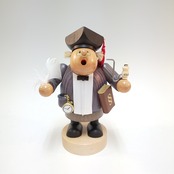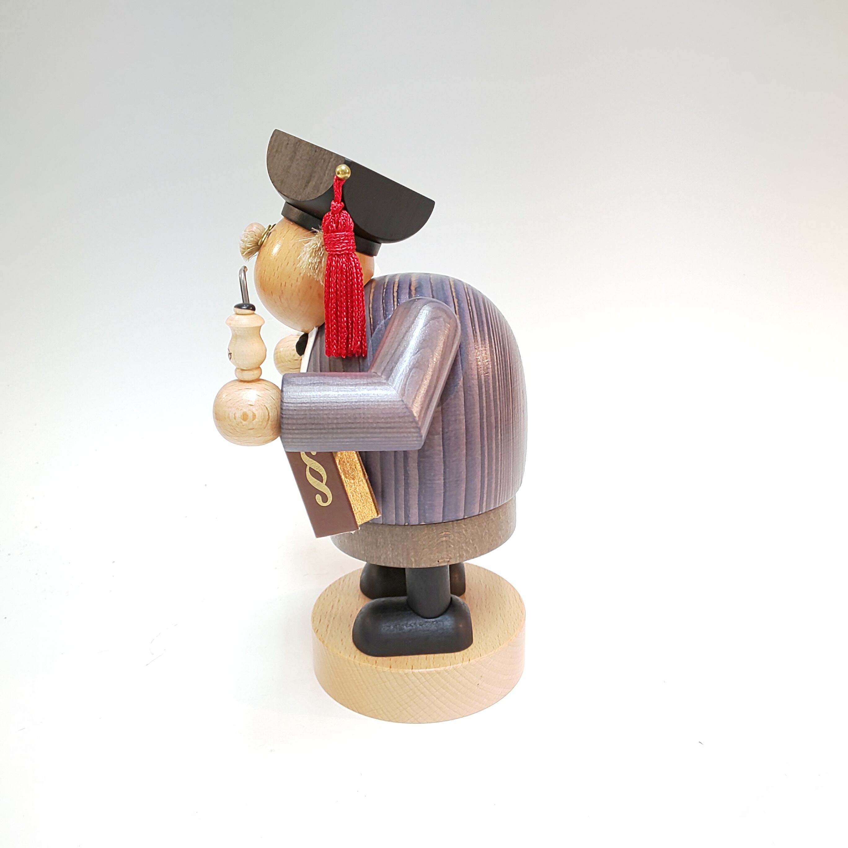 このお人形は香炉人形と言われ、胴体と脚の部分が二つに分かれ、脚の中にある金属の部分に香を載せ、火をつけて再び胴体を元通りにかぶせれば、口から煙がたなびき出ます。まるで人形が香炉のように見える大変ユニークな人形です。 黒い帽子をかぶり、右手には羽ペン、左わきには法律の分厚い本、ポケットには懐中時計がぶら下がっています。堂々とした姿をしている「法律家」のお人形です。法を守るために毎日奮闘しているようですね。